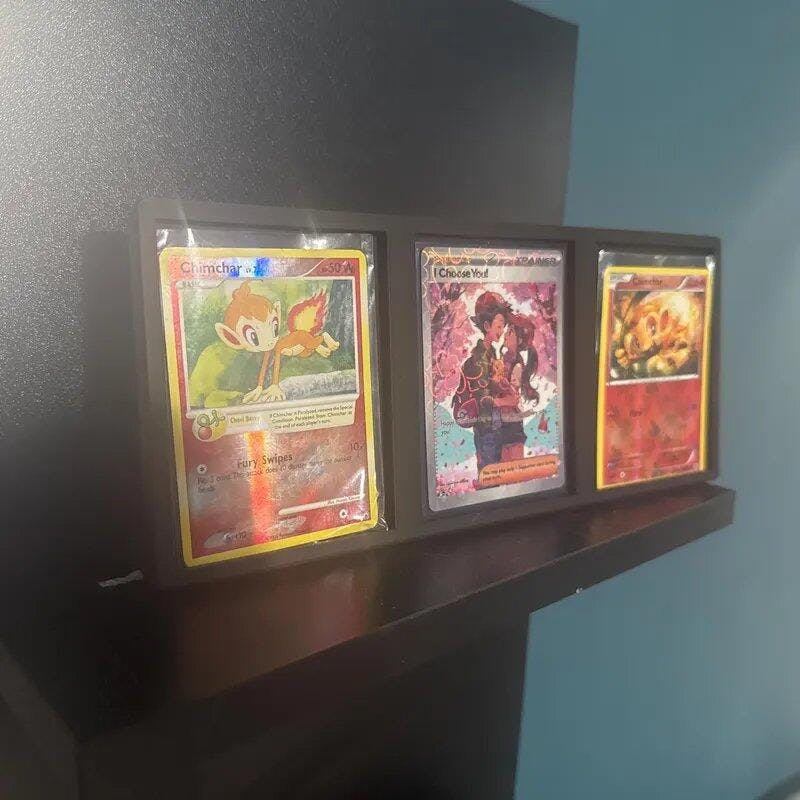 Showcase your favorite trading cards — Pokémon, MTG, Yu-Gi-Oh!, Lorcana and sports cards with a sleek 3-slot display that accepts thick plastic toploader sleeves. Perfect for collectors, retail display, and gifting.